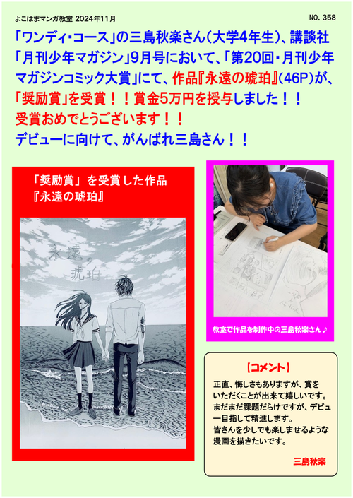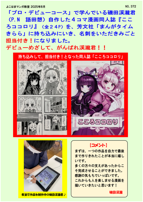 「よこはまマンガ教室」のマスコットキャラクター、「かもちゅ」の動画vol.1.2が完成しました!見てちゅ~!!